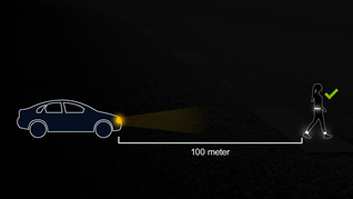 Med reflex ser bilen dig på minst 100 meter och hinner bromsa.