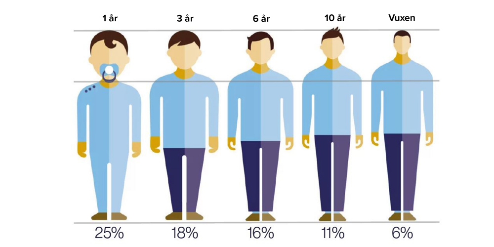 Vi är ju alla olika och det är också våra barn. Vissa växer lite snabbare på längden, medan andra är lite tyngre. Idag finns det alternativ på marknaden som gör att de flesta barn kan åka bakåtvänt så länge som möjligt, gärna upp till ca 6–7 års ålder. Det är därför viktigt att välja en bilbarnstol som räcker för hela den bakåtvända perioden.