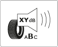 Buller utanför bilen, det vill säga det ljud däcken ger utanför bilen då de rullar mot vägbanan. Visas både som antal decibel och på skalan A–C, där A betyder lägre ljud än C, exemplet visar B.