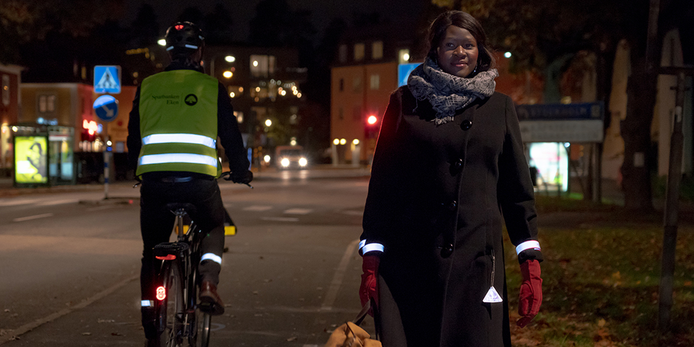 Reflexer hör inte bara hemma på mörka landsvägar. I stadstrafik är det ännu viktigare att bära reflex, trots neonskyltar och gatlyktor. De flesta olyckor med gångtrafikanter sker i tättbebyggda områden med gatubelysning.