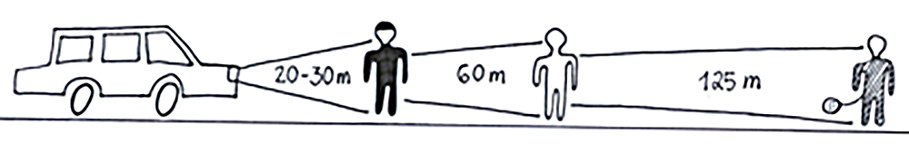 En bra reflex syns i mörker eller under dåliga siktförhållanden när den träffas av ljuset från en strålkastare på en bil. Det beror på att reflexerna återkastar det starka skenet från strålkastaren. Med mörka kläder upptäcker föraren i en bil med halvljus dig på 20–30 meters avstånd, med ljusa kläder syns du från 60 meter. Om du bär reflex ser föraren dig på 125 meters avstånd.