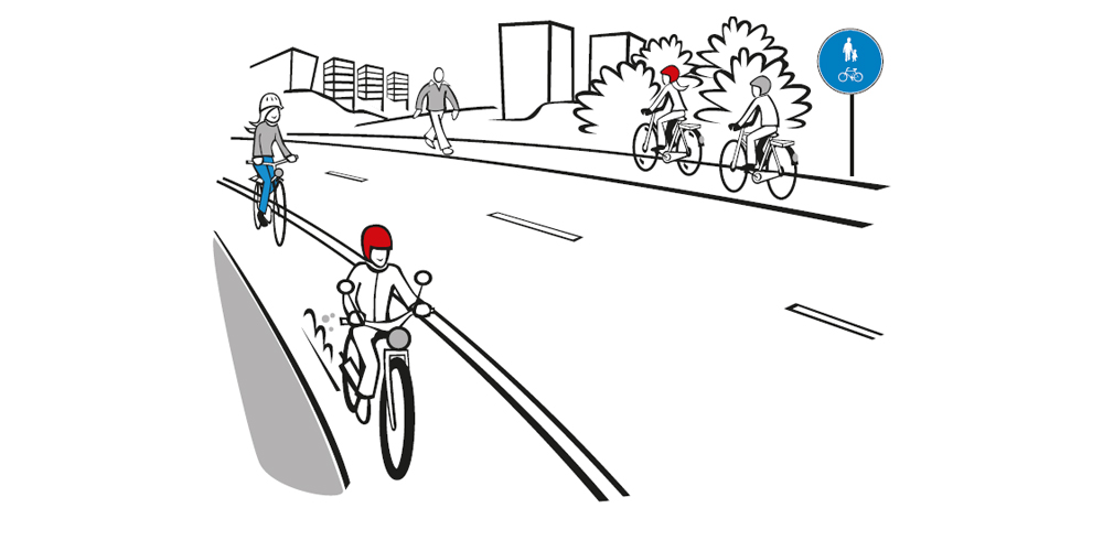 Cyklister och förare av tvåhjuliga moped klass II ska vanligtvis färdas på cykelbana, om det finns en sådan. Om det inte är tillåtet att köra moped på cykelbanan, så anges detta på en tilläggstavla. Cyklister över 15 år får, om särskild försiktighet iakttas, istället cykla på körbanan om hastighetsbegränsningen är max 50 km/tim och i övrigt när det är lämpligare med hänsyn till färdmålets läge. Cyklar med fler än två hjul, eller som drar en cykelkärra, får använda körbana om det är lämpligare med hänsyn till fordonets bredd. När cyklingen sker på vägen ska vägrenen användas. Finns varken cykelbana eller vägren får man använda körbanan. Skyldigheten att använda vägrenen gäller endast om vägrenen är tillräckligt bred och i övrigt lämplig att använda.