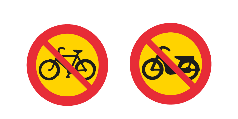 Cyklister och förare av tvåhjuliga moped klass II ska vanligtvis färdas på cykelbana om det finns en sådan. Om det inte är tillåtet att köra moped på cykelbanan, så anges detta på en tilläggstavla.