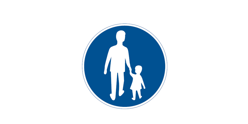 Märket anger bana avsedd endast för gående. Där får man inte cykla eller köra moped men man får leda cykeln eller mopeden om detta inte är förbjudet enligt tilläggstavla.