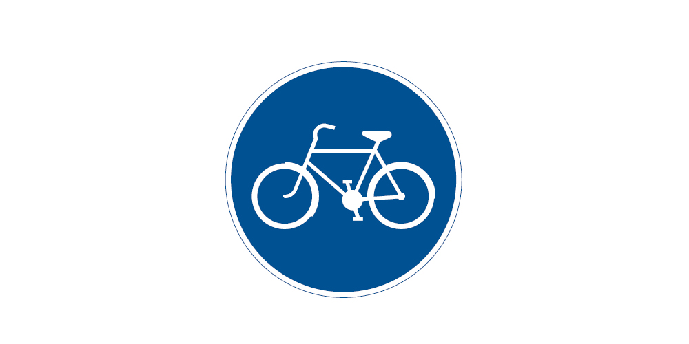 Påbudsmärke för cykel- och mopedbana. Om moped klass II inte får föras på banan anges det på en tilläggstavla.