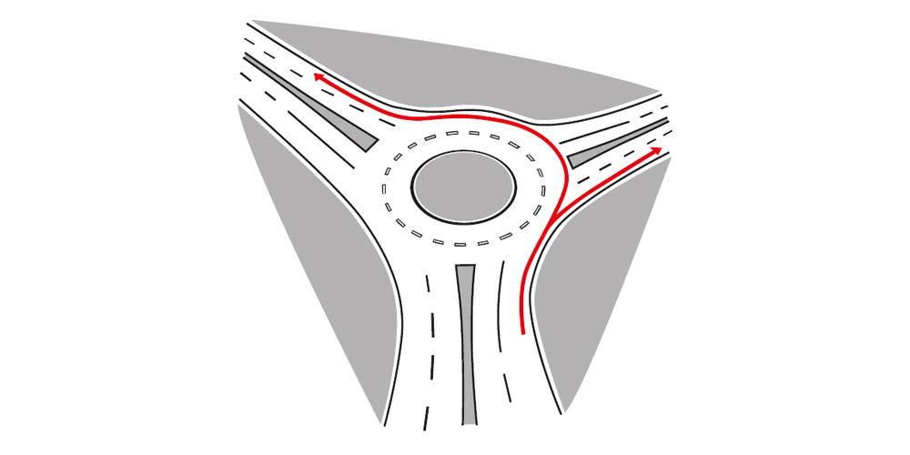 När du kör in i en cirkulationsplats måste du lämna företräde för all trafik som redan finns där. Varje sväng ut från cirkulationsplatsen är i princip att betrakta som en högersväng. Därför ska den normalt göras från högra körfältet.