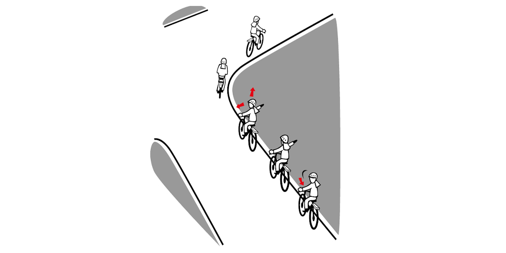 Huvudregeln är att cyklister och mopedister ska färdas efter varandra. Den regeln gäller inte bara på körbanan utan också på vägrenen och cykelbanan. Finns det tillräckligt med utrymme, får cyklister dock köra i bredd, om det kan ske utan fara eller olägenhet för trafiken. (6 kap 1 § Trafikförordningen)