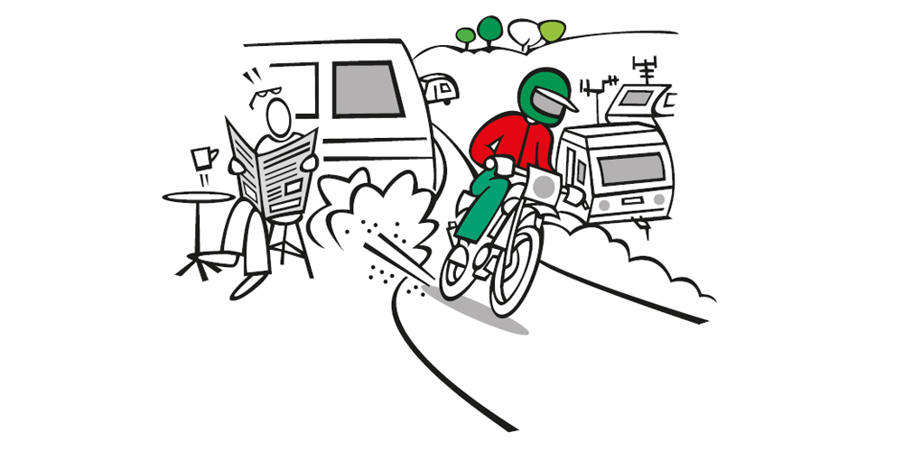 Du får inte köra ett motordrivet fordon så att det bullrar onödigt mycket. Du ska också se till att fordonet inte släpper ut avgaser i sådan mängd att de orsakar olägenheter. Vid bostadsbebyggelse ska du anpassa färdväg, hastighet och färdsätt så att andra inte blir störda i onödan. Körning som är onödig och störande får inte förekomma där. Bestämmelserna gäller alla motordrivna fordon, alltså även mopeder. (4 kap 7 och 8 §§ Trafikförordningen)