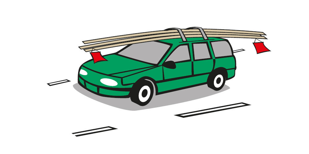 Skjuter lasten ut framför eller mer än en meter bakom fordonet måste du tydligt utmärka lastens yttersta del, till exempel med en gul eller röd flagga. I mörker eller vid dålig sikt ska du istället använda lykta och reflexer, som visar vitt ljus framåt och rött ljus bakåt. (3 kap 82 § Trafikförordningen)