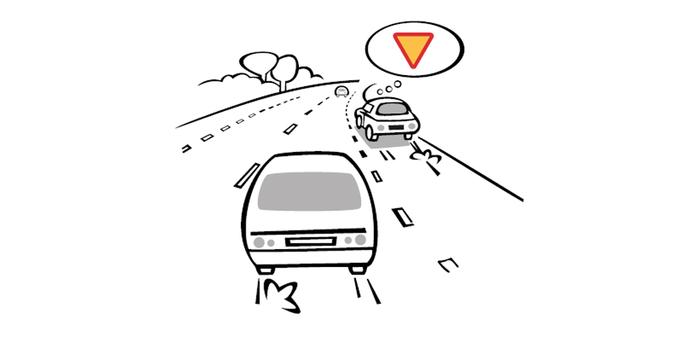 Den grundläggande regeln om väjningsplikt innebär också att du är skyldig att lämna företräde åt fordon som korsar din egen väg när du ska köra in på en väg